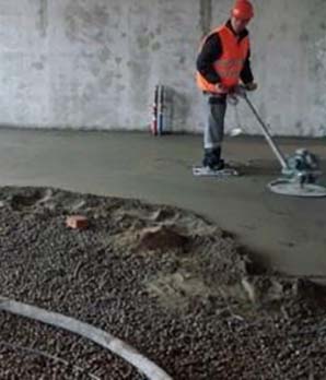 - При вязаном выравнивании пола заливка состава производится непосредственно на основание перекрытия, а сверху монтируется гидроизоляция и декоративное покрытие. Чаще всего этот метод используется при выравнивании высоты пола в квартирах новостроек.